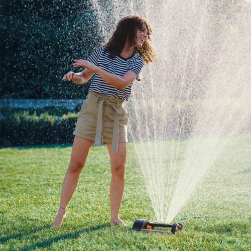 Laistītājs ar 12 precīzi izgrieztiem caurumiem, kas nodrošina vienmērīgu ūdens sadali ar dabiska lietus efektu. Pieci dažādi laistīšanas režīmi. Laistīšanas laukums no 98-165 m2 atkarībā no spiediena ūdensvadā.